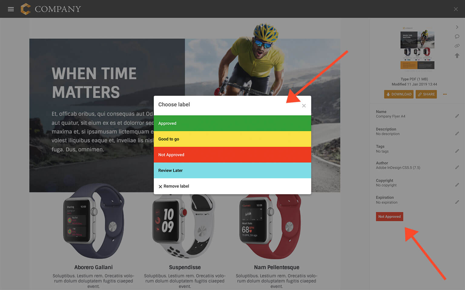 And they can change label on the file e.g. from Not Approved to Approved. Read more about Labels.