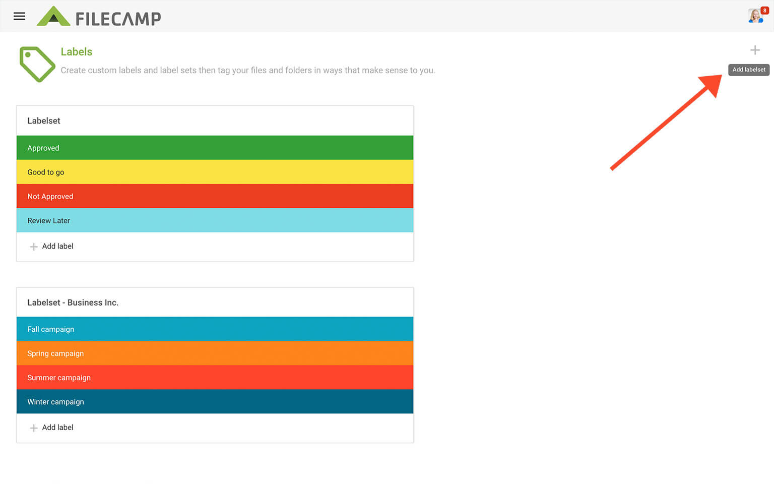 Labels is a powerful feature with many usages. With Labels you can mark your files and folders with colored labels and texts that make sense for you and your workflow. You can search for files and folders that have a specific label. E.g. you can quickly find all files in a specific folder that has the label “Approved”.